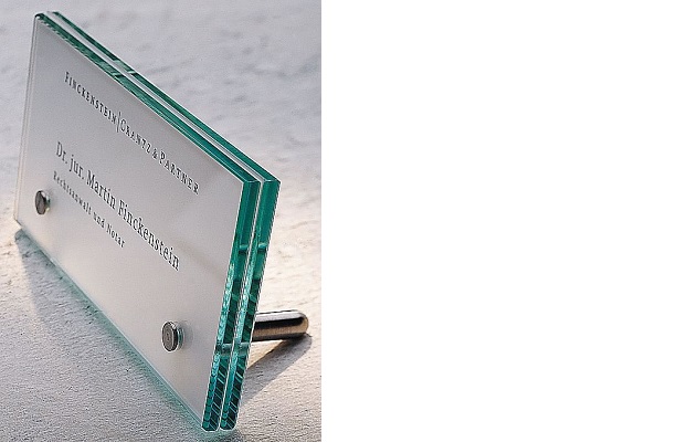 Zeer elegant deskpaneel voor uw interne bewegwijzering. Twee glasplaatjes voorzien van boorgaten voor bevestiging van de RVS/INOX houdervoetjes met een diameter van 10 mm. Geschikt voor inserts en voor belettering. Men kan het product beveiligen waardoor onbevoegden niets kunnen wijzigen.| Aantal | Prijs per stuk |